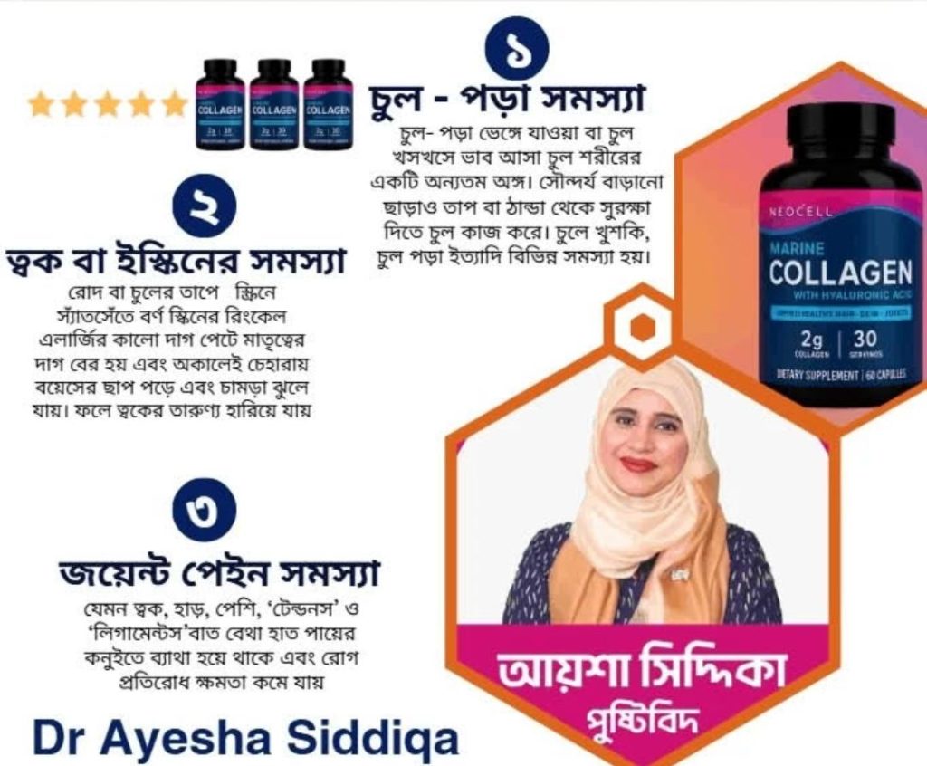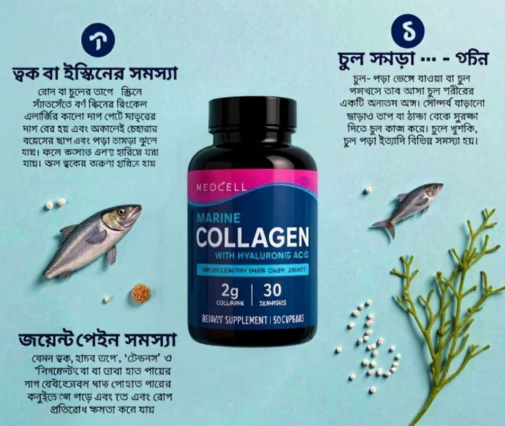 মেরিন হালাল কোলাজেন সাপ্লিমেন্ট একটি পরম যত্নের স্পর্শ, যা আপনার ত্বকের প্রতিটি স্তরে পৌঁছে তার প্রকৃত সৌন্দর্যকে উন্মোচন করে